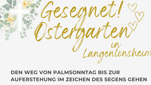 Bis zum Sonntag nach Ostern können Sie sich hier selbst auf den Weg machen. Dieses Jahr steht der Segen im Mittelpunkt. Wo kann ich Gottes Segen finden in einer Zeit voller Dunkelheiten, Angst und Leid? An Stationen zu Palmsonntag, Gründonnerstag, Karfreitag, dem Leeren Grab und dem Ostergarten soll Gottes Segen spürbar und teilbar werden.