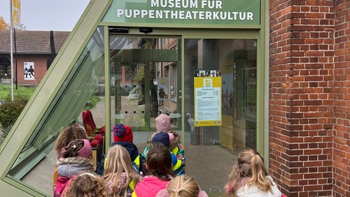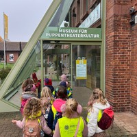 Am 7.November 2025 waren die Vorschulkinder unterwegs: mit Zug und Bus haben sich die Kinder mit Ihren Erzieherinnen auf den Weg nach Bad Kreuznach gemacht. Das Ziel des Ausflugs war das Museum für PuppentheaterKultur, kurz: PuK. Dort erwartete sie das Theaterstück "Prinzessin Anna oder Wie man einen Helden findet".