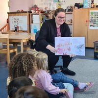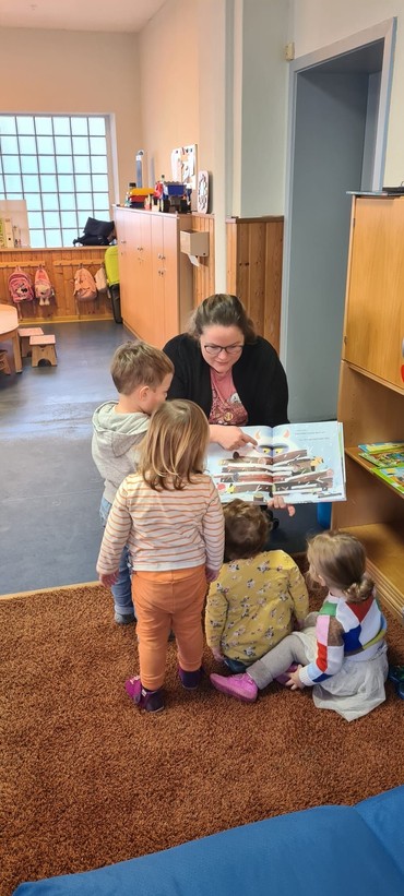 Am Freitag, 21. November 2025, war bundesweiter Vorlesetag. Pfarrerin Noreen Weyl besuchte deshalb unsere KiTa und brachte in jeder Gruppe ein Buch mit.